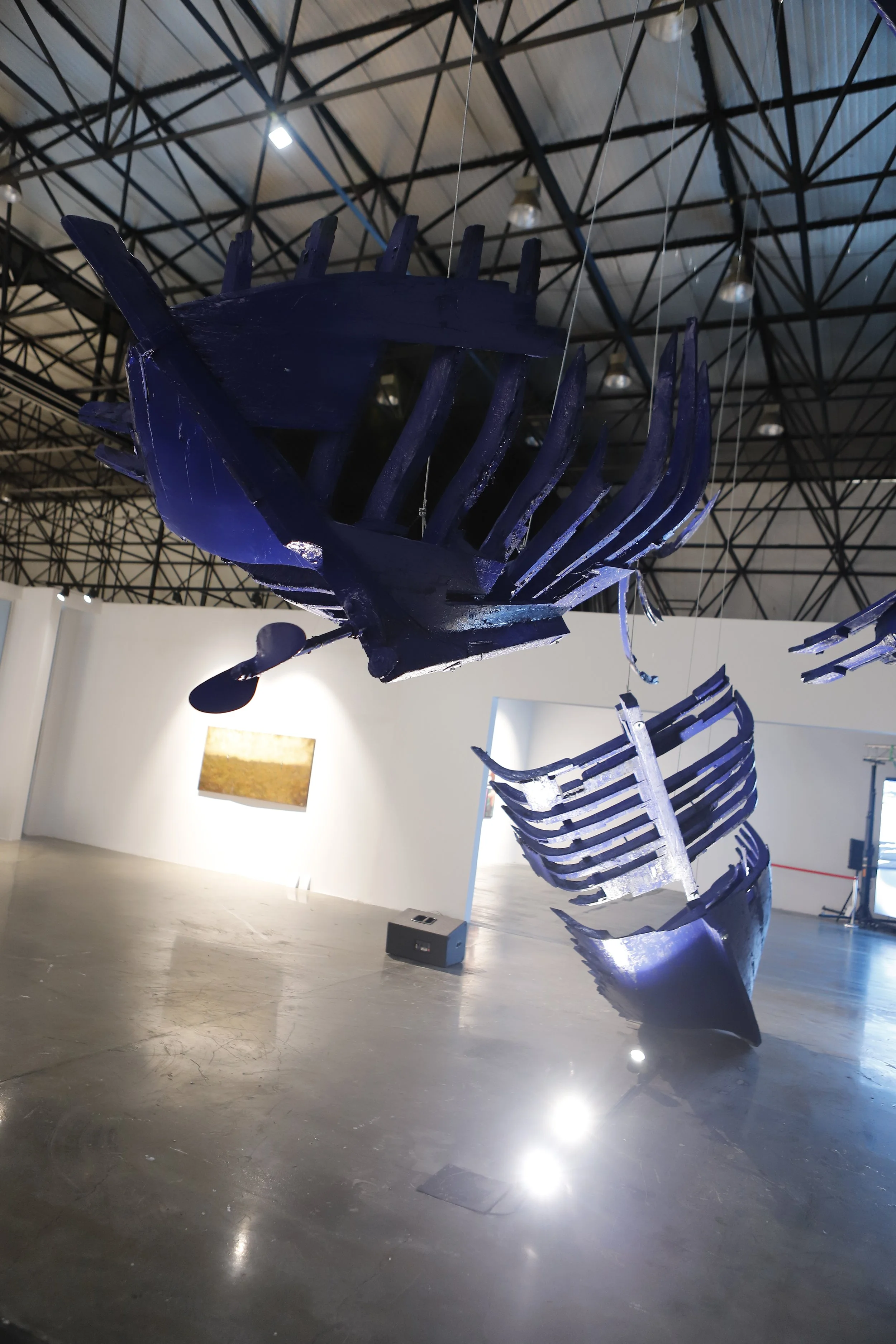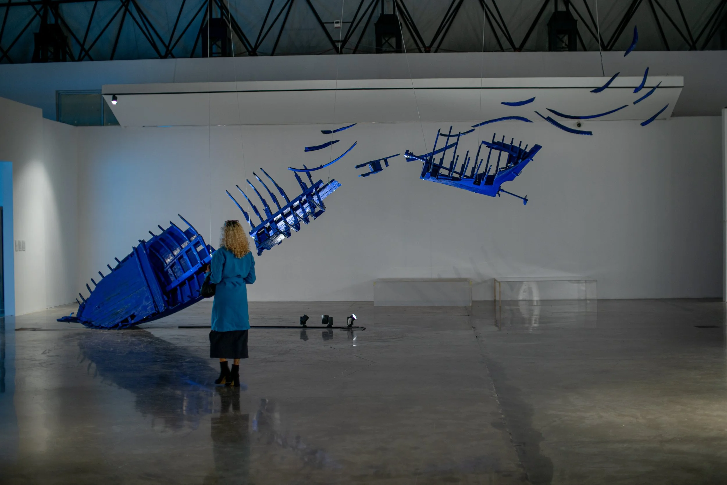 Avec une barque déconstruite et suspendue dans les airs, qui défie à la fois l’intellect et les émotions, Mehdi Hachid aspire à sensibiliser le public aux enjeux qui concernent l’humanité tout entière. « Waiting for Noah » est un prétexte pour explorer le phénomène migratoire qui a transformé la Méditerranée en un cimetière de l’humanité, mais pas que. L’œuvre évoque éga- lement l’effondrement des écosystèmes marins, de la surexploitation des ressources et le risque que ça représente pour des milliers de personnes, qui vivent des métiers de la mer.